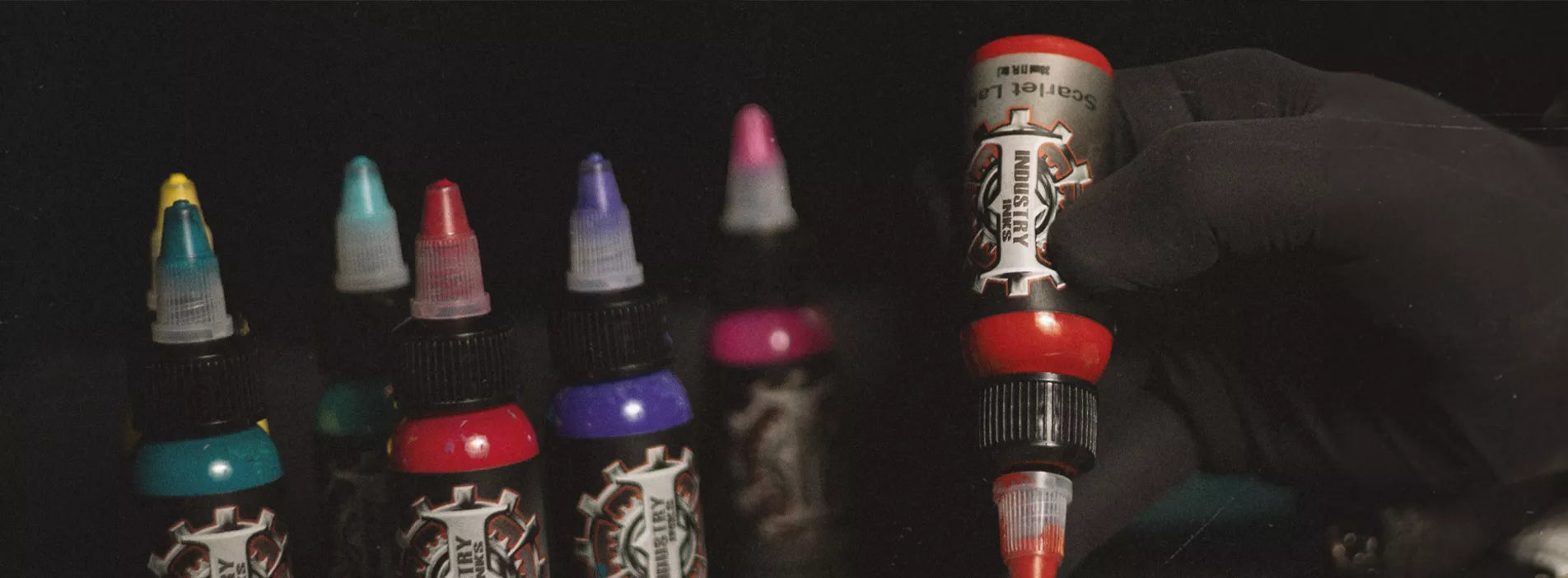 Industry Inks is owned, operated and designed by the veteran chemist Eric Watson. All of the ink is developed with organic pigments and vegan friendly ingredients. We designed our product with the perfect balance of pigment load and ease of workability in mind. Our goal has been to make an ink that could saturate consistently therefore causing less trauma and facilitating better overall heals. Our pigments have proven to overall heal with better, brighter and bolder tattoos.