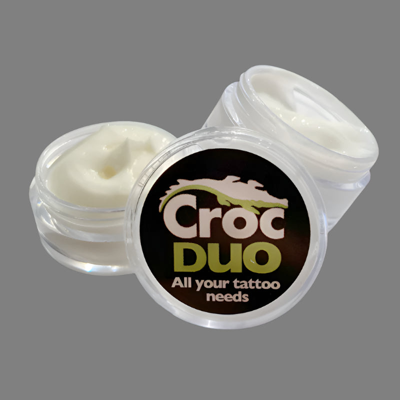 A two-step process of CrocWash and CrocLite (20ml of each) helps you look after your tattoo for healthy skin and longer-lasting color.